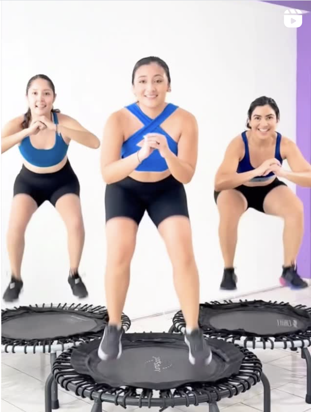 Amamos y es nuestra especialidad la clase de jumping, es una clase aeróbica, de bajo impacto para las articulaciones, muy divertida y que combina la música con el rebote en tu mini trampolín.